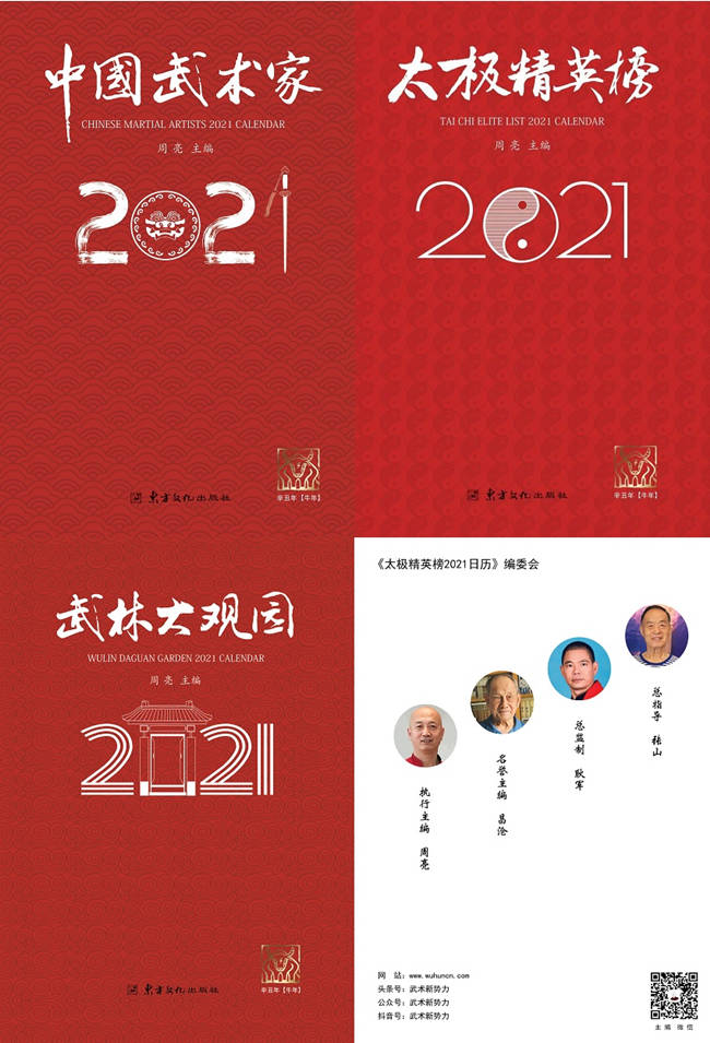 《中国武术家2021年日历》,收录了武林名宿专家,各门派拳种代表性传承人共365人;